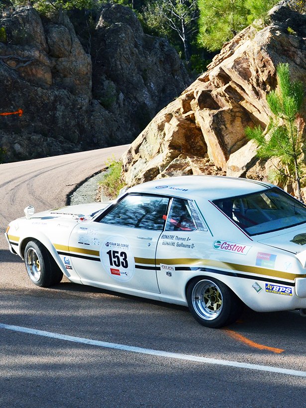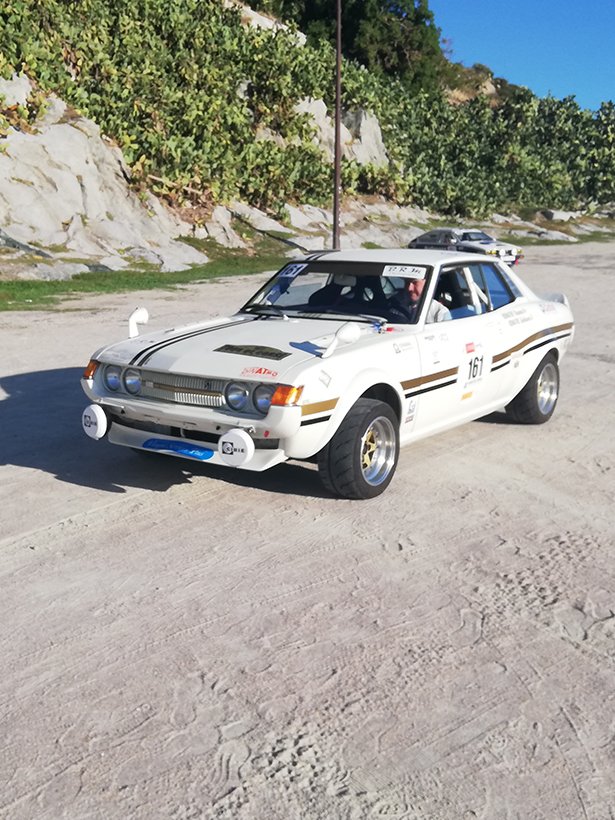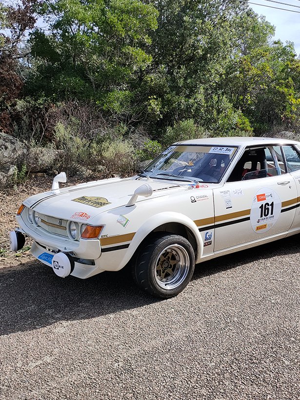 La Toyota Celica Groupe 2 est une version de compétition dérivée du célèbre coupé japonais, préparée spécifiquement pour les rallyes dans les années 1970 et 1980. La Toyota Celica TA20/TA22 est la première génération du modèle iconique de la marque. Homologuée selon la réglementation FIA du Groupe 2 par Toyota entre 1970 et 1977, elle se distingue par une préparation mécanique poussée, tout en conservant une base issue de la série. Cette version est équipée d’un moteur 2TG de type 4 cylindres en ligne 1600cm3 à double arbre à cames en tête, développant environ 125 chevaux, associé à une boîte manuelle à 5 rapports et un différentiel autobloquant. La voiture reçoit également des modifications châssis importantes : suspensions avant développées et homologuées par Toyota, étriers 4 pistons à l’avant, arceau de sécurité, réservoir de sécurité de grande capacité, extensions d’ailes et jantes allégées, afin d’affronter les spéciales de rallye les plus exigeantes.