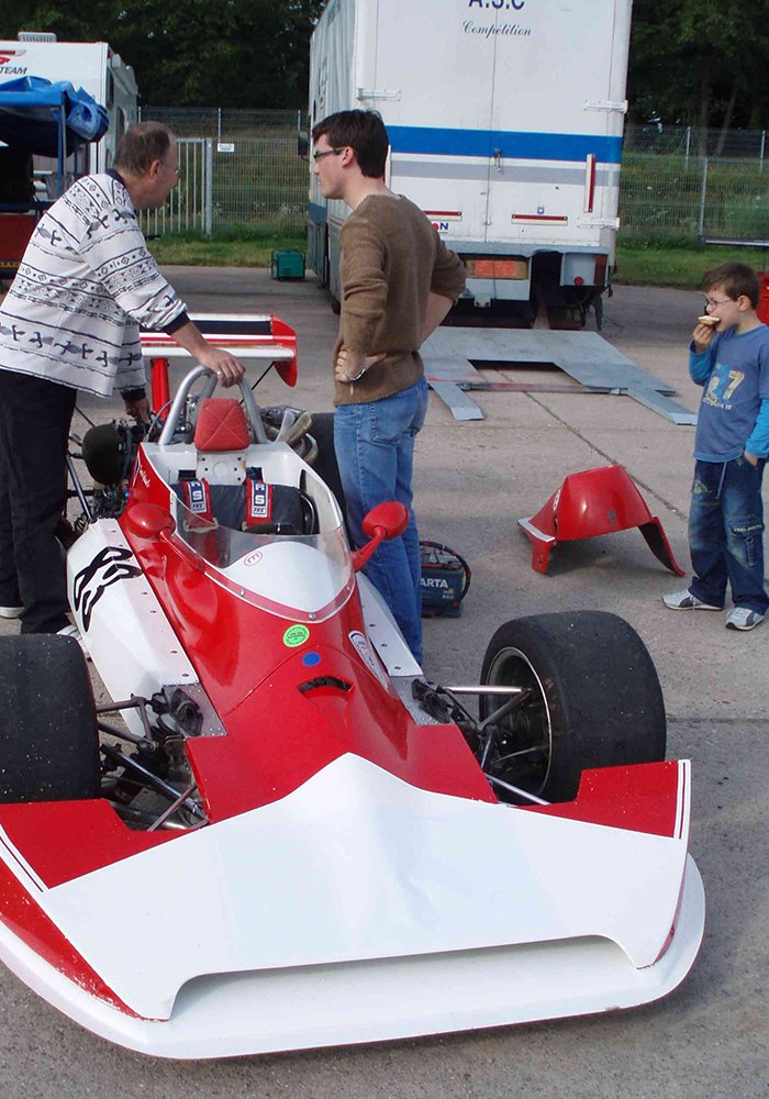 La Lola T450 est une monoplace de Formule 2 conçue par le constructeur britannique Lola Cars pour la saison 1976. Il s’agit du premier modèle de Formule 2 développé par Lola depuis la T240 de 1971, marquant ainsi une tentative de retour de la marque dans cette catégorie très compétitive. Basée sur la Lola T460 de Formule Atlantic, la T450 se distingue par son châssis monocoque en aluminium, associé à un moteur Ford-Cosworth de 2 litres développant environ 200 chevaux, ce qui lui permettait d’atteindre une vitesse de pointe proche de 275 km/h. La voiture était dotée d’une suspension indépendante à double triangulation et d’un système de freinage à disques sur les quatre roues, offrant un comportement dynamique typique des monoplaces de l’époque.